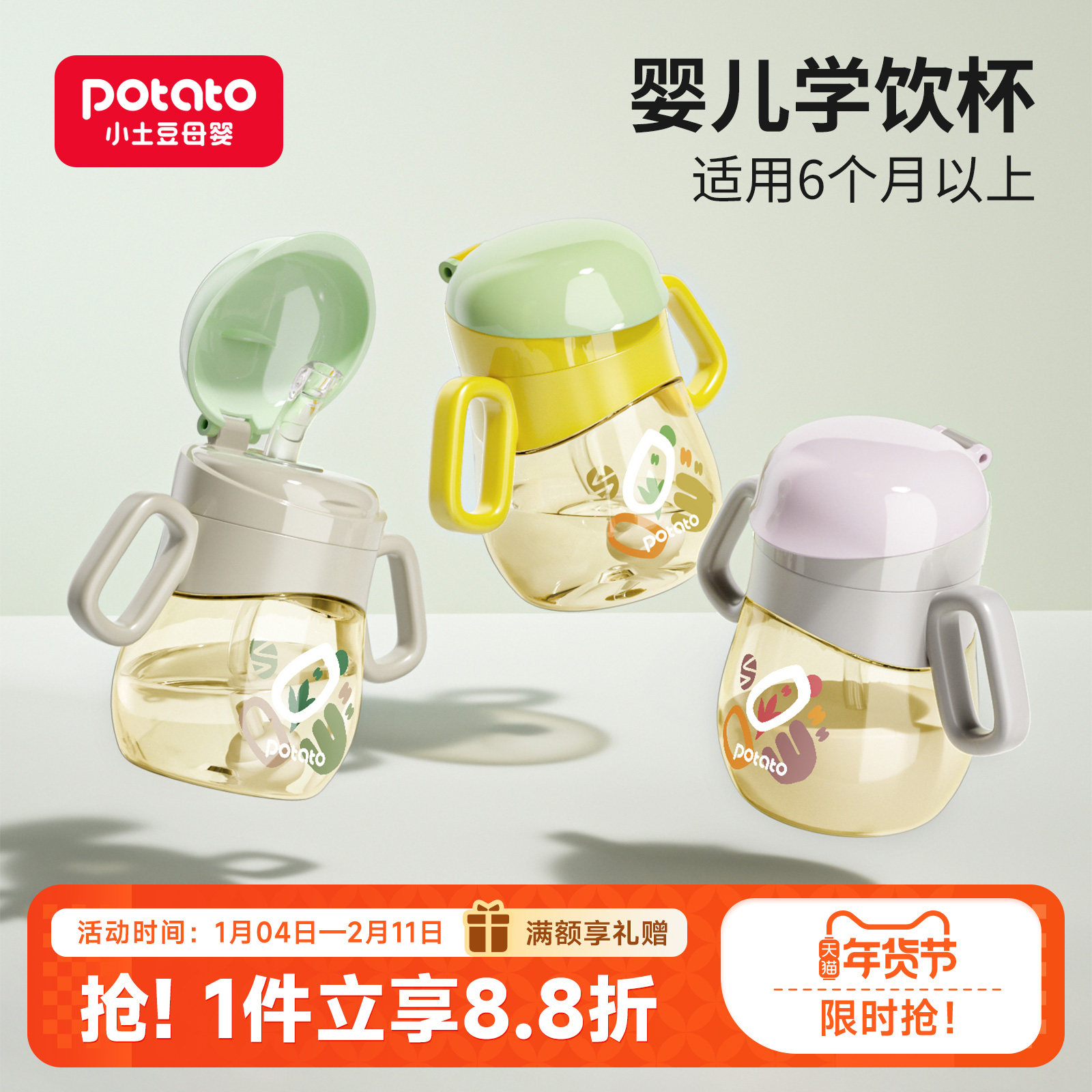 小土豆宝宝学饮杯PPSU吸管杯儿童喝奶喝水杯两用带手柄杯子大宝宝