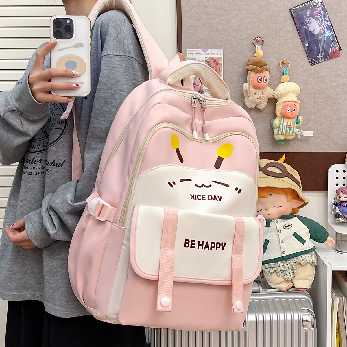 爱路喜包包2025新款女生小背包可爱粉色双肩包旅游通勤大学生书包