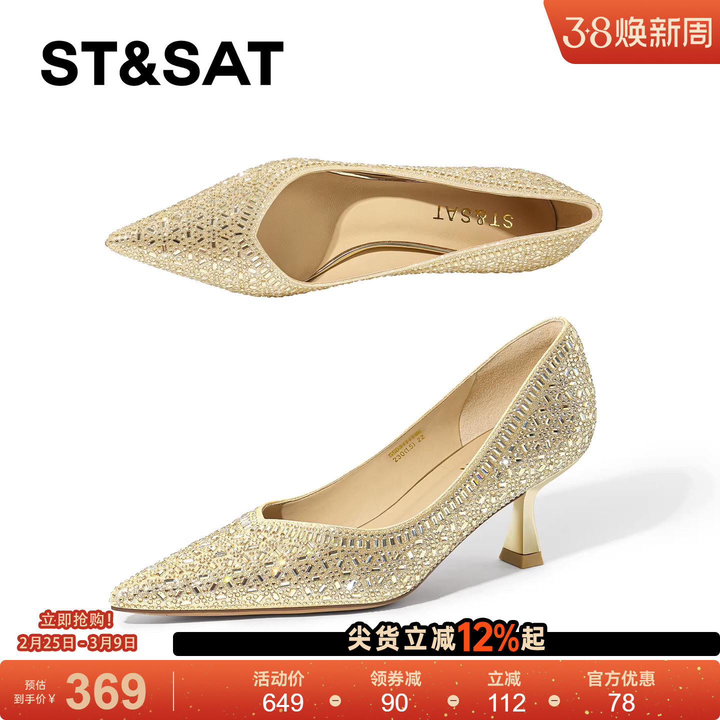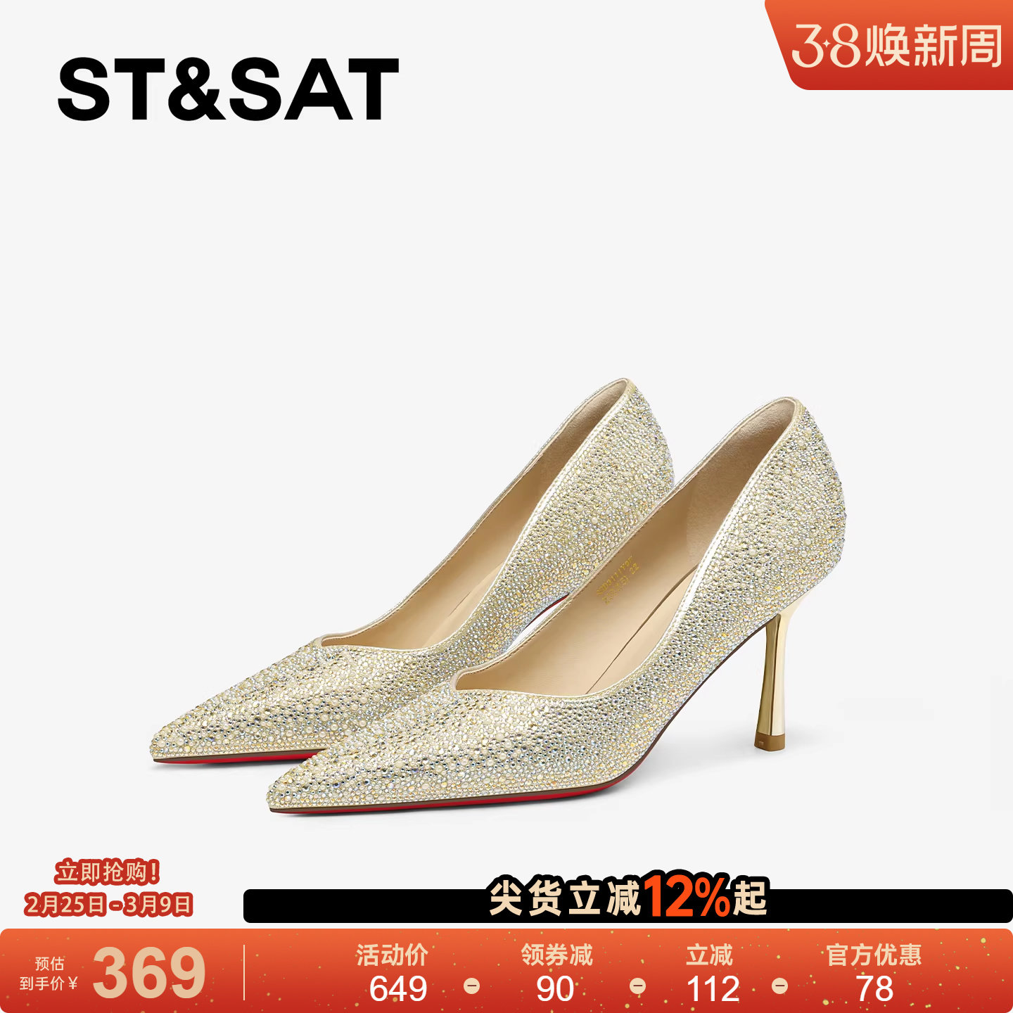 星期六细跟高跟鞋女2025尖头水钻V口单鞋法式气质礼服宴会鞋婚鞋