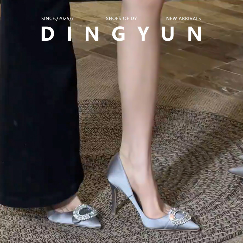 羊皮版dingyun丁允水钻细跟高跟鞋气质高级感尖头浅口单鞋2026春