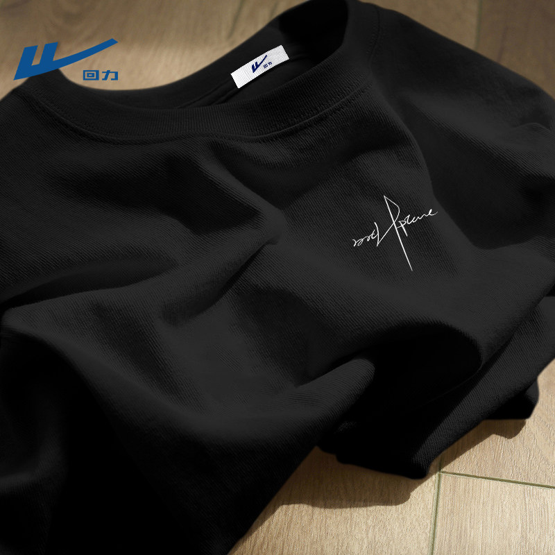 回力男士短袖t恤纯棉学生简约字母印花上衣休闲宽松春季打底衫男