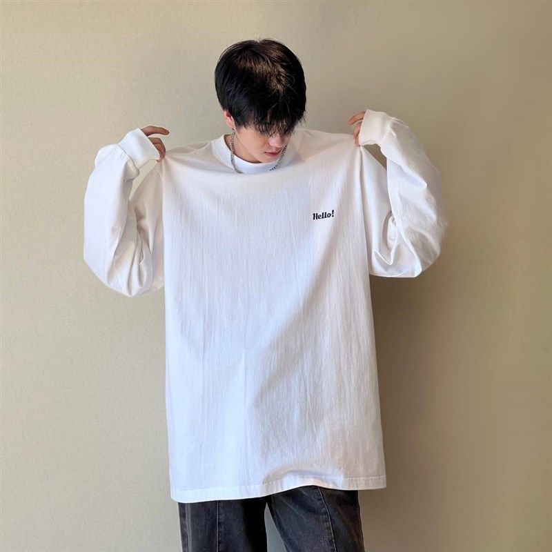 240克长袖t恤春季打底衫男宽松百搭日常基础款日系圆领内搭潮上衣