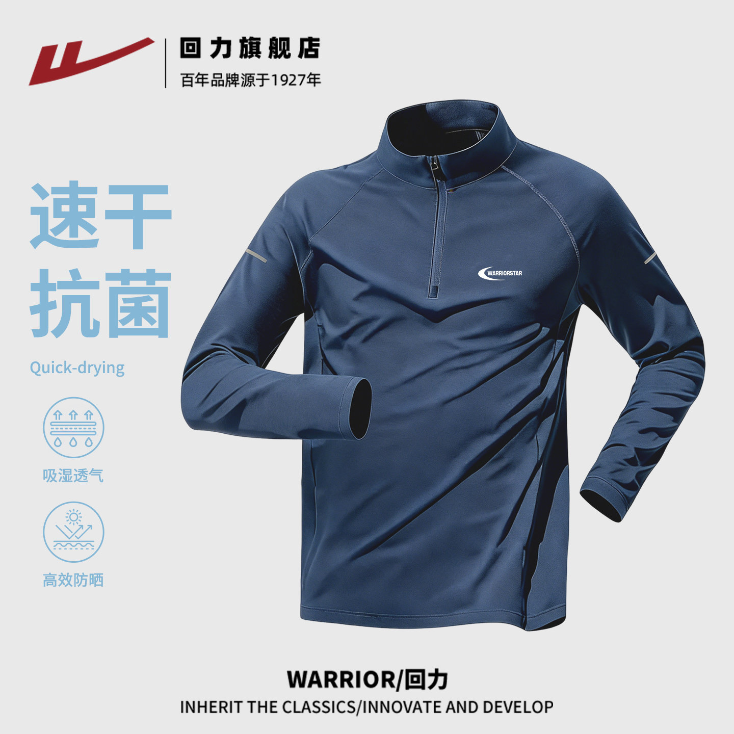 回力半拉链速干衣长袖t恤男士跑步健身训练运动衣服春季打底衫男H