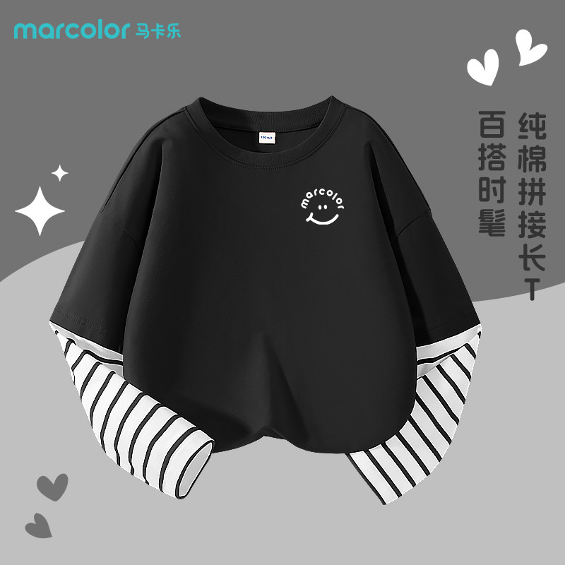 马卡乐童装儿童春季打底衫男童黑色纯棉长袖t恤小女孩春装运动服