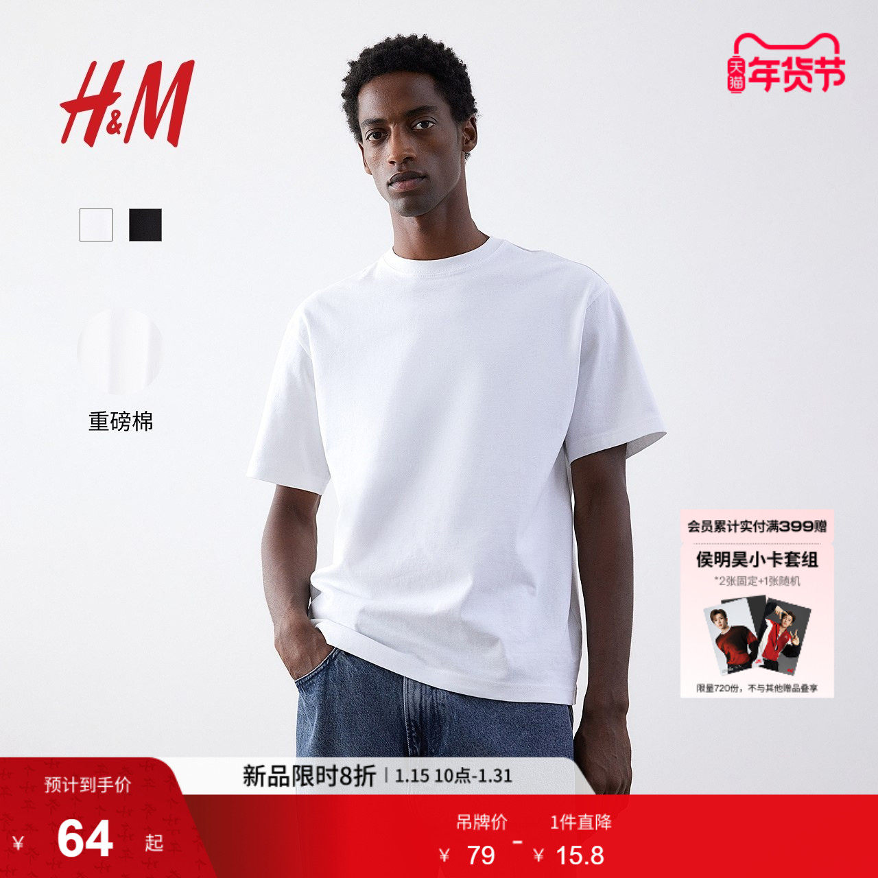 HM男装女装T恤春季重磅纯棉打底衫内搭休闲短袖情侣装上衣0608945