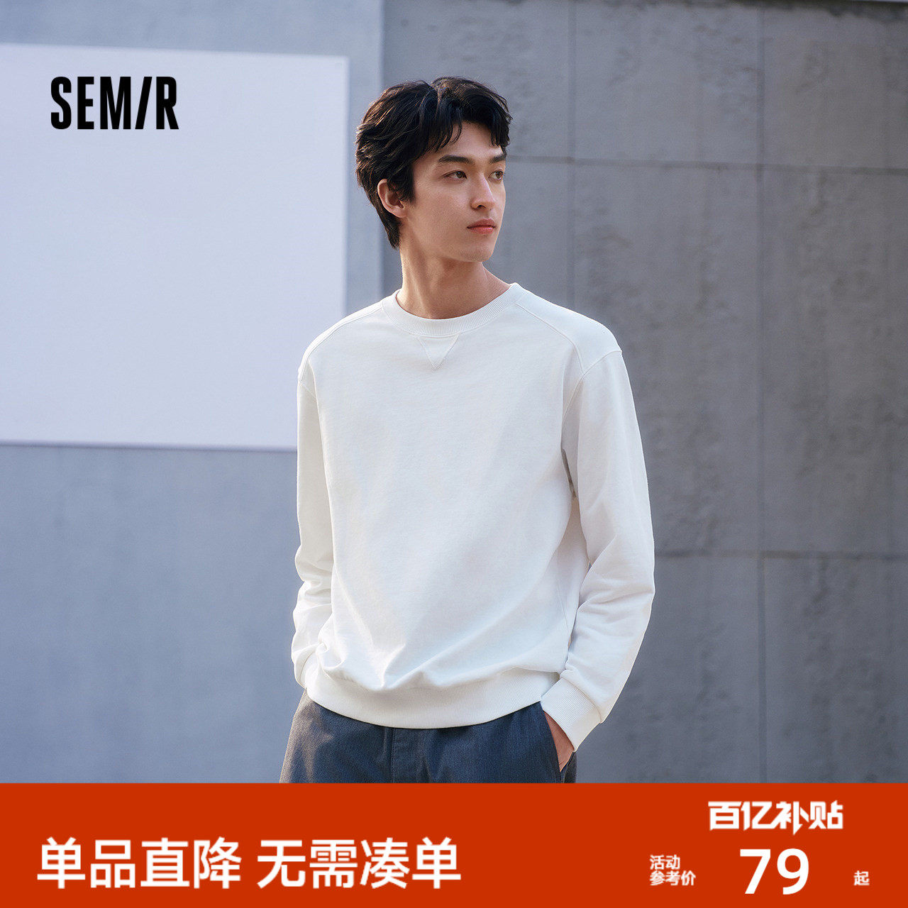森马卫衣男春季纯色简约百搭长袖上衣休闲套头圆领打底衫柔软舒适