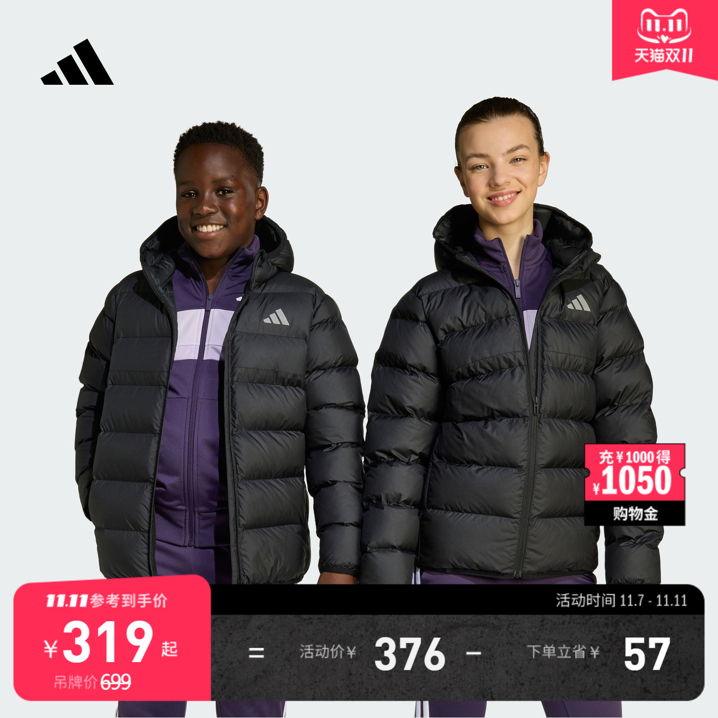 男女大童舒适休闲保暖连帽棉服秋冬新款adidas阿迪达斯官方轻运动