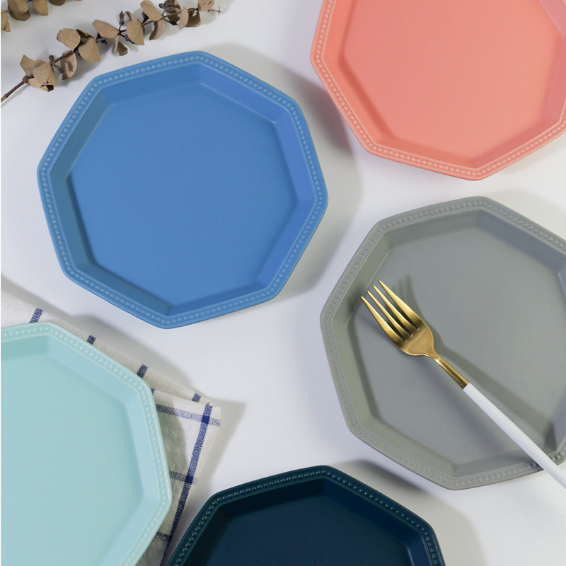 日式陶瓷餐具餐盘磨砂几何八角盘子平盘西餐盘子 创意沙拉碗饭碗
