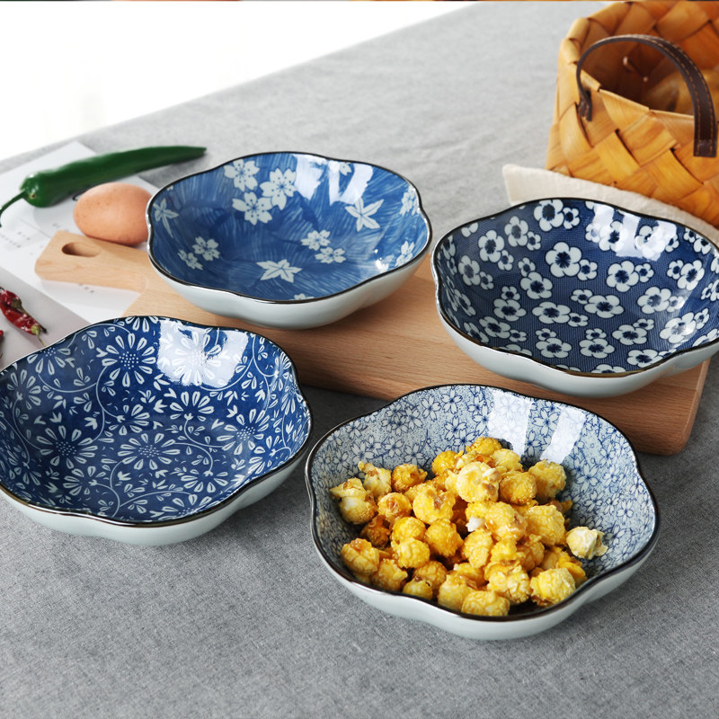 日式翘角盘陶瓷盘子 创意调料盘大号小吃盘配菜盘 水果沙拉盘子