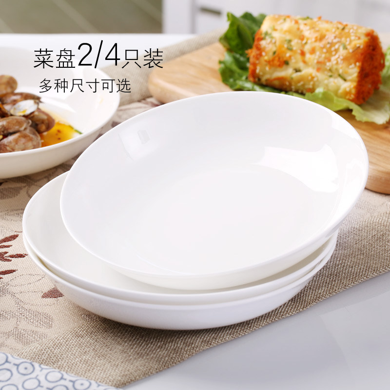 凡瑞斯纯白色骨瓷圆形家用中式深汤菜盘子 创意蒸盘 餐具盘组合