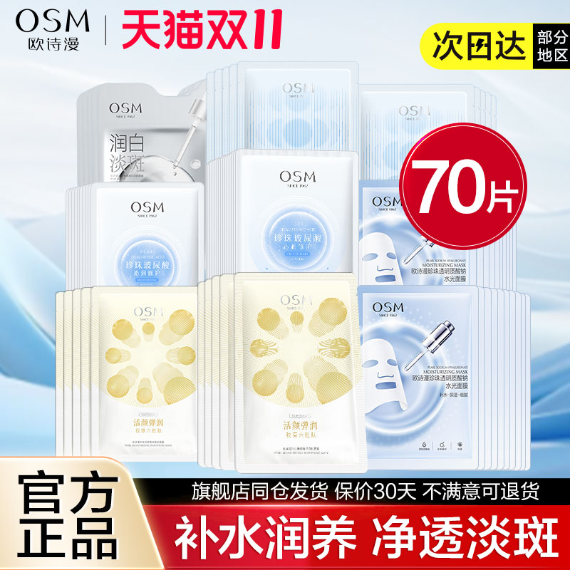 欧诗漫面膜70片组合焕亮保湿改善暗沉美白补水女护肤品官方网正品