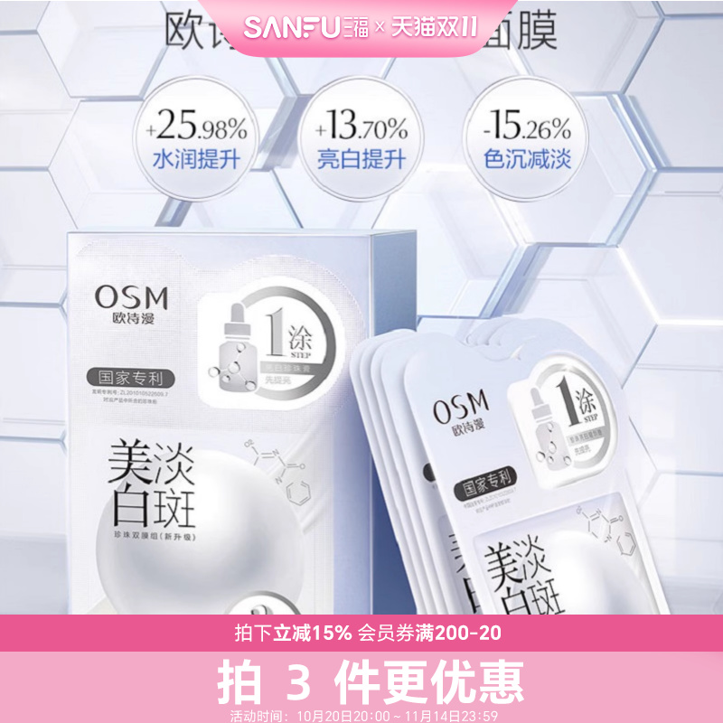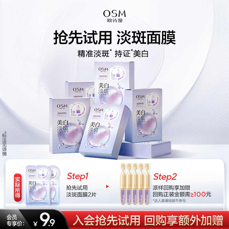 【天猫U先试用】欧诗漫面膜美白淡斑2片补水保湿提亮肤色旗舰店