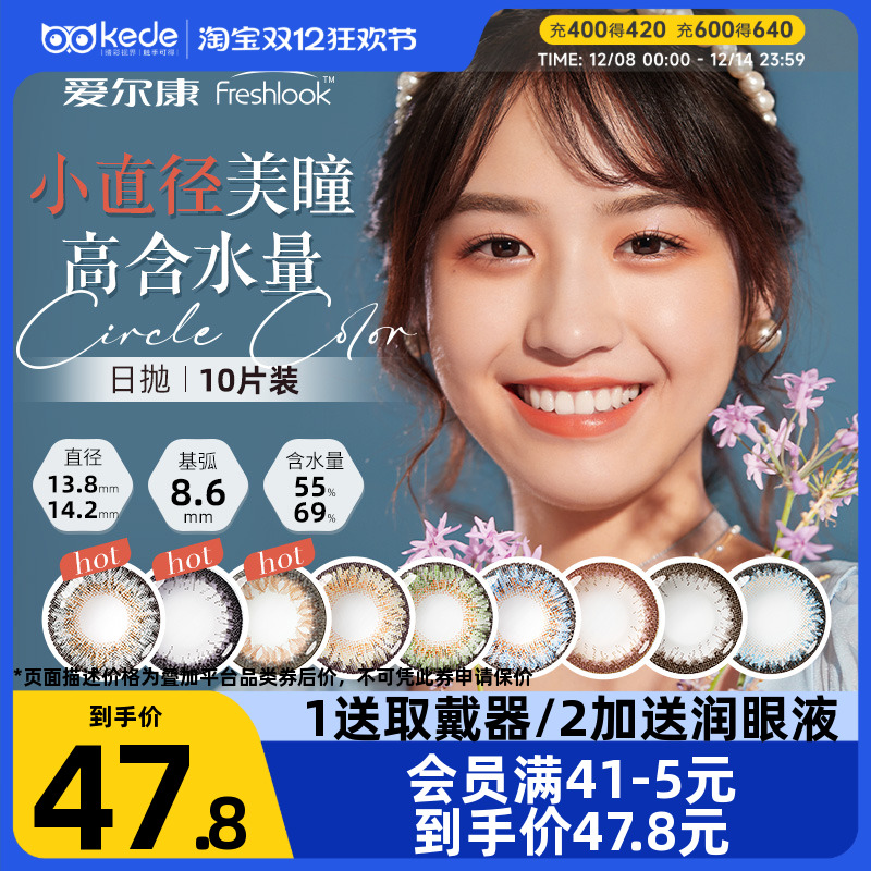 爱尔康视康freshlook美瞳女睛彩日抛10片隐形眼镜大小直径13.8mm