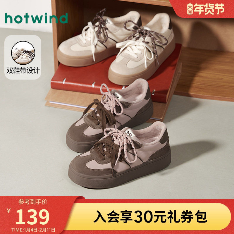 热风厚底德训鞋女鞋2025年冬季新款复古休闲松糕鞋板鞋小白鞋子