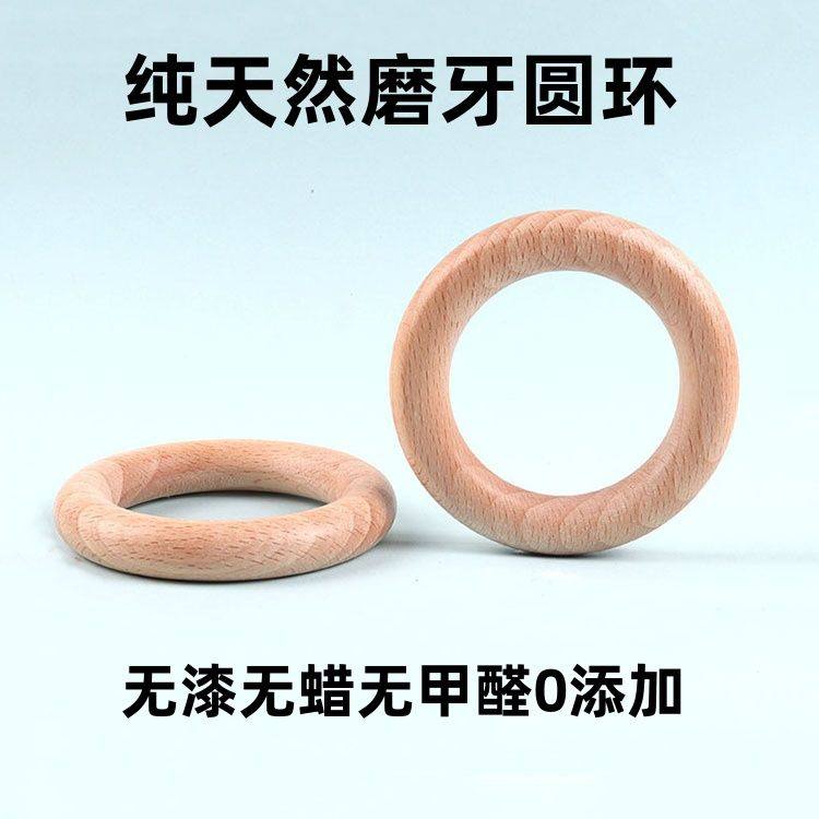 新款纯天然木质圆环磨牙棒婴儿6个月以上4宝宝牙胶防吃手幼儿玩具