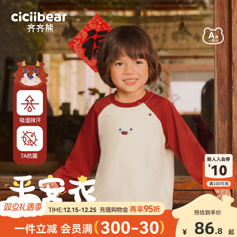 [7A抗菌吸湿]齐齐熊宝宝t恤长袖拜年服冬款男童打底衫新年亲子装