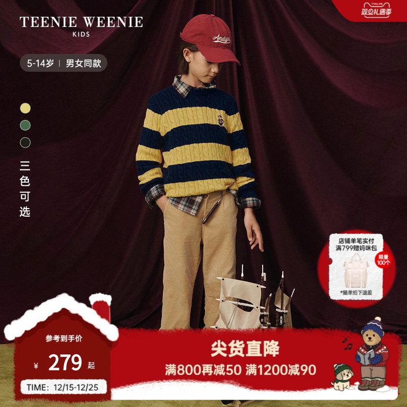 TeenieWeenie Kids小熊童装25年新款秋冬男女童亲子条纹绞花毛衣