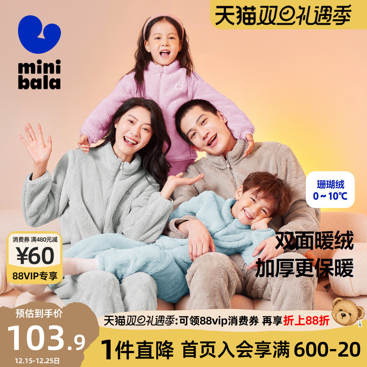 迷你巴拉巴拉男童女童睡衣冬季新款儿童双面绒家居服套装亲子装暖