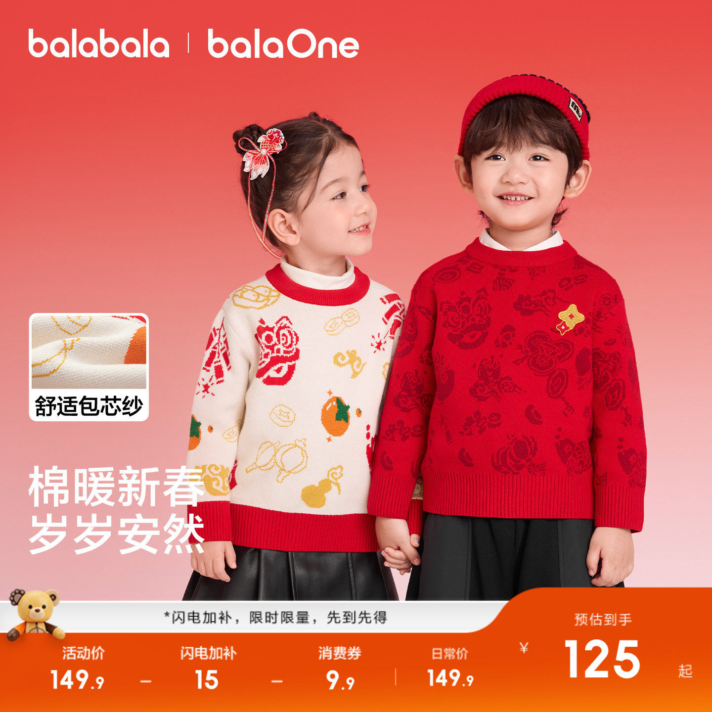 巴拉巴拉童装儿童毛衣男女童2025新款秋冬装宝宝内搭亲子装拜年服