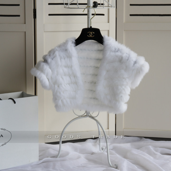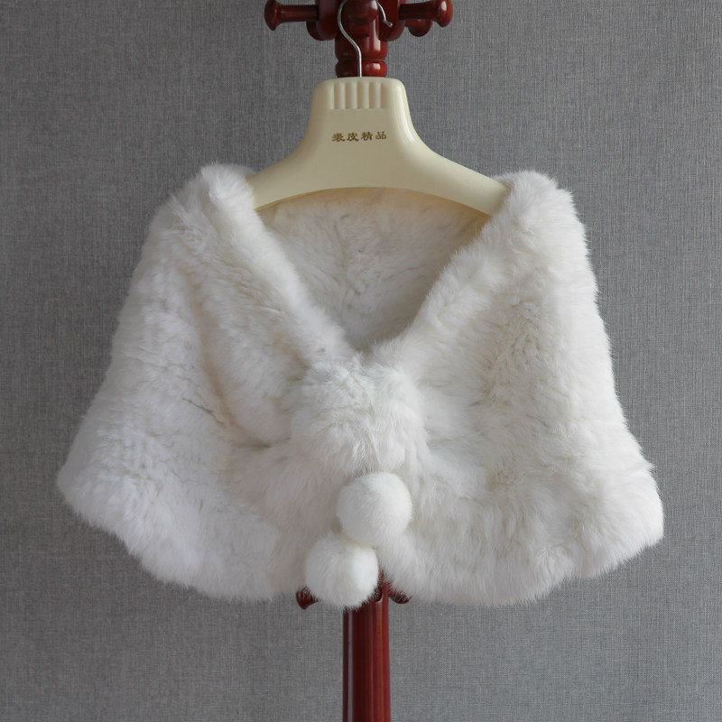 2025款外贸单品小兔毛编织披肩 抽花带球球新娘兔毛披肩皮草披肩