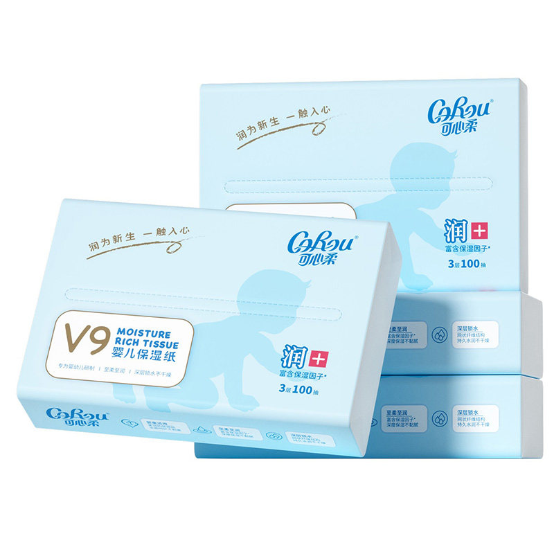 可心柔V9新生儿婴儿保湿纸乳霜纸抽纸实惠家用装整箱100抽12包