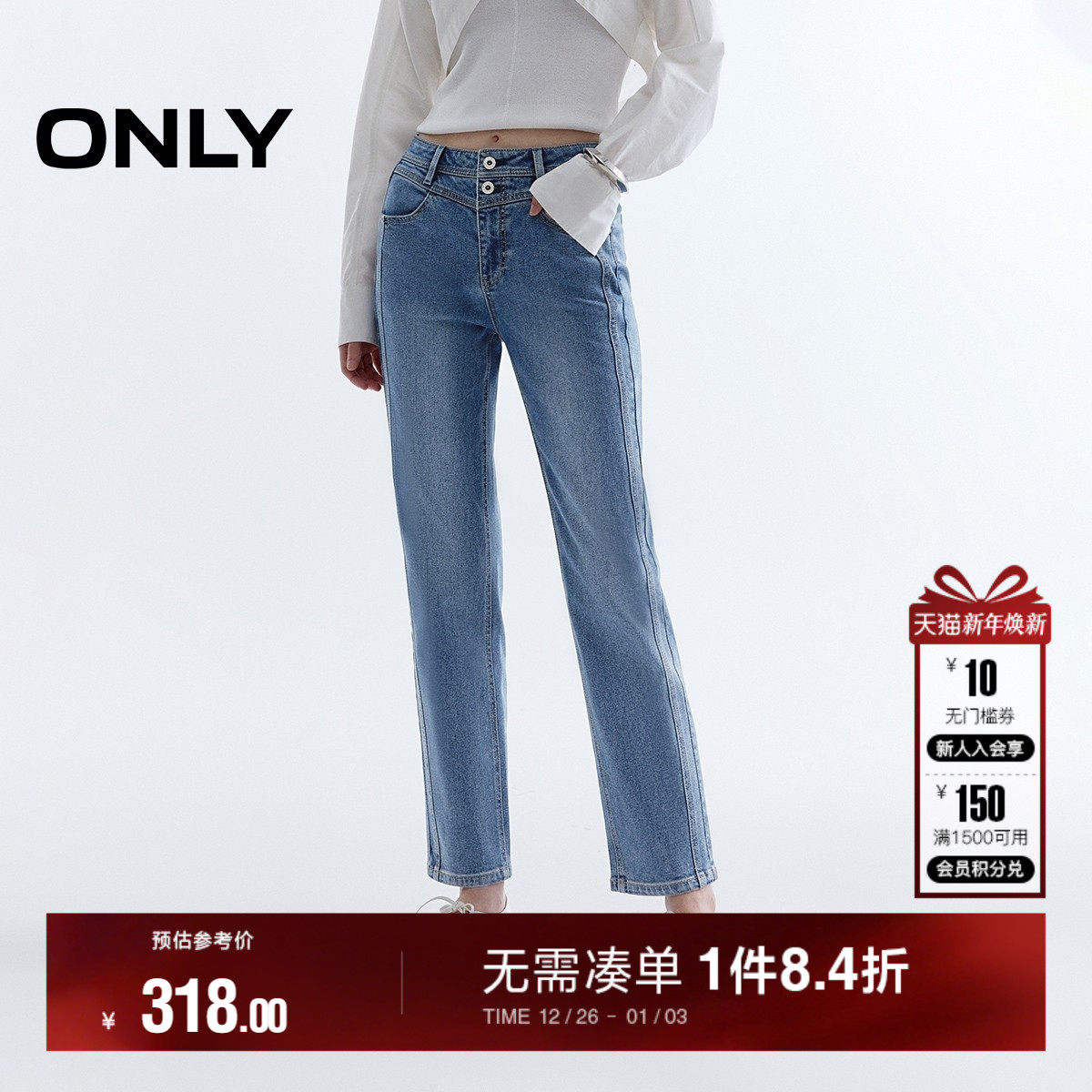 【小个子神裤】ONLY2025冬季新款高腰显瘦V字腰头九分直筒牛仔裤