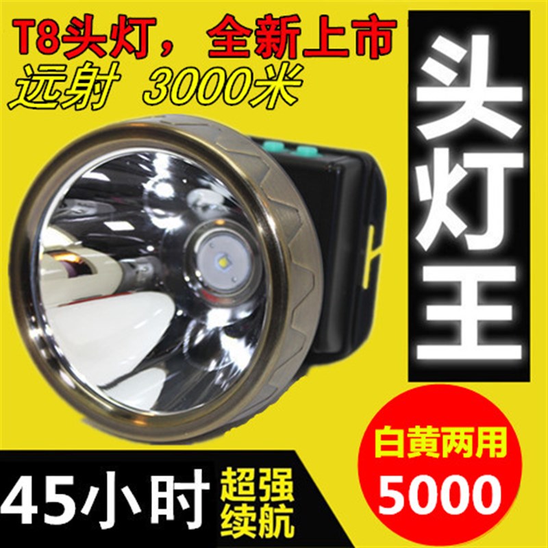 强光超亮充电远射高亮度T8夜钓鱼LED光明大将头戴矿灯头灯5000米W