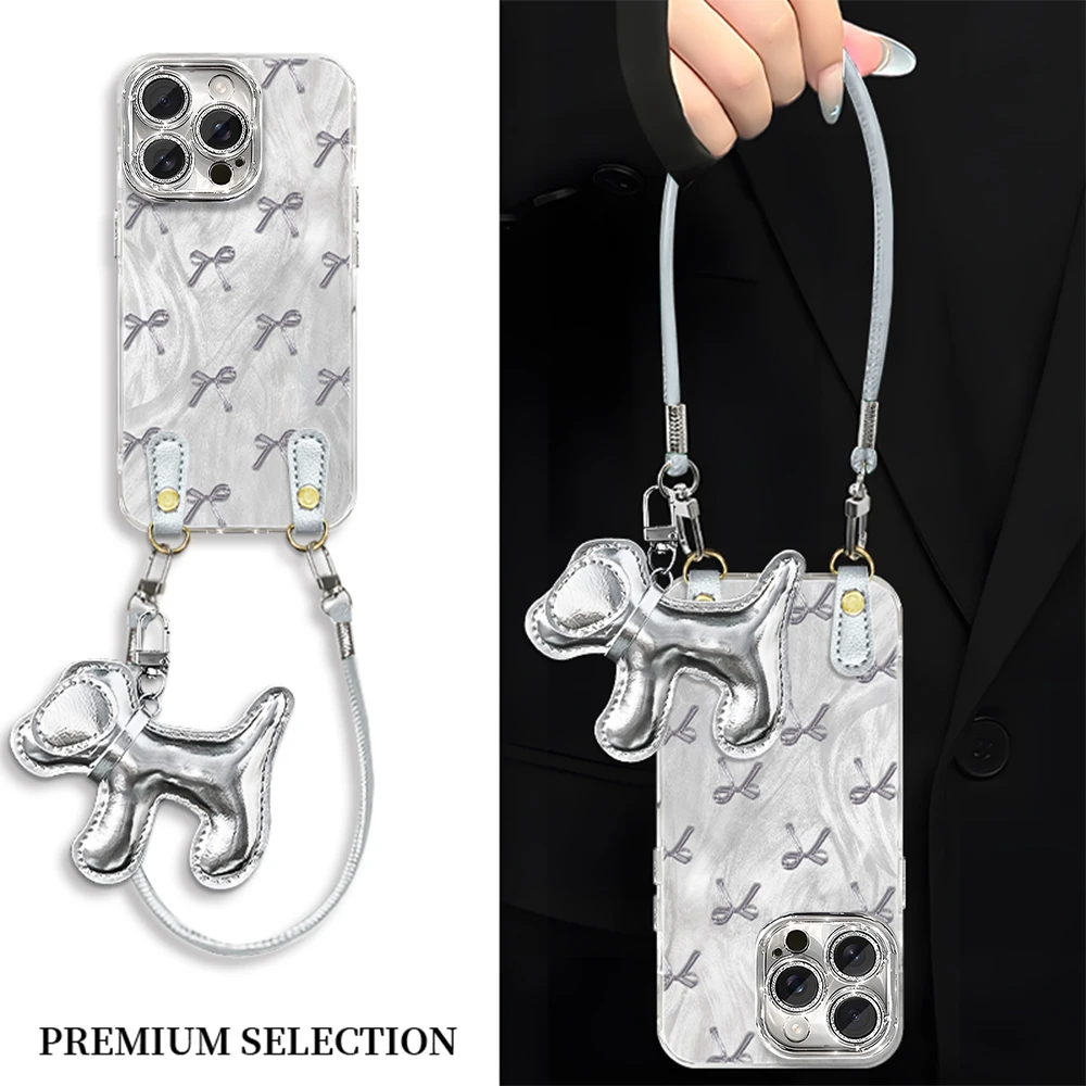 适用苹果17pro手机壳iPhone16pro潮流金属感蝴蝶结15plus高级感14全包镜头膜13斜跨挂绳12女11简约8/7防摔6s