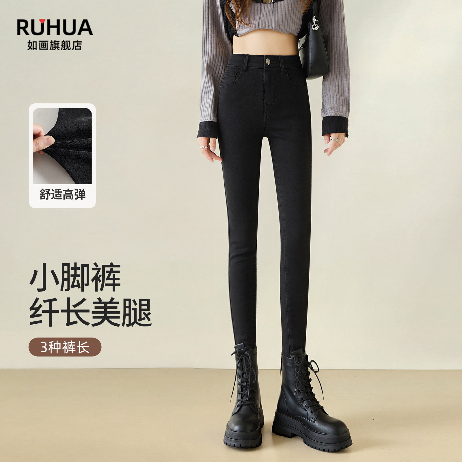 黑色小脚裤女2026新款春秋高弹力紧身牛仔裤修身高腰配靴子铅笔裤