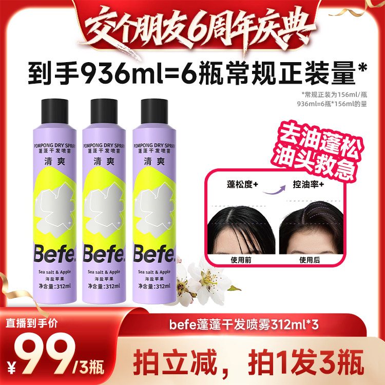 【交个朋友6周年庆典】befe干发喷雾去油蓬松油头救急不留白不涩