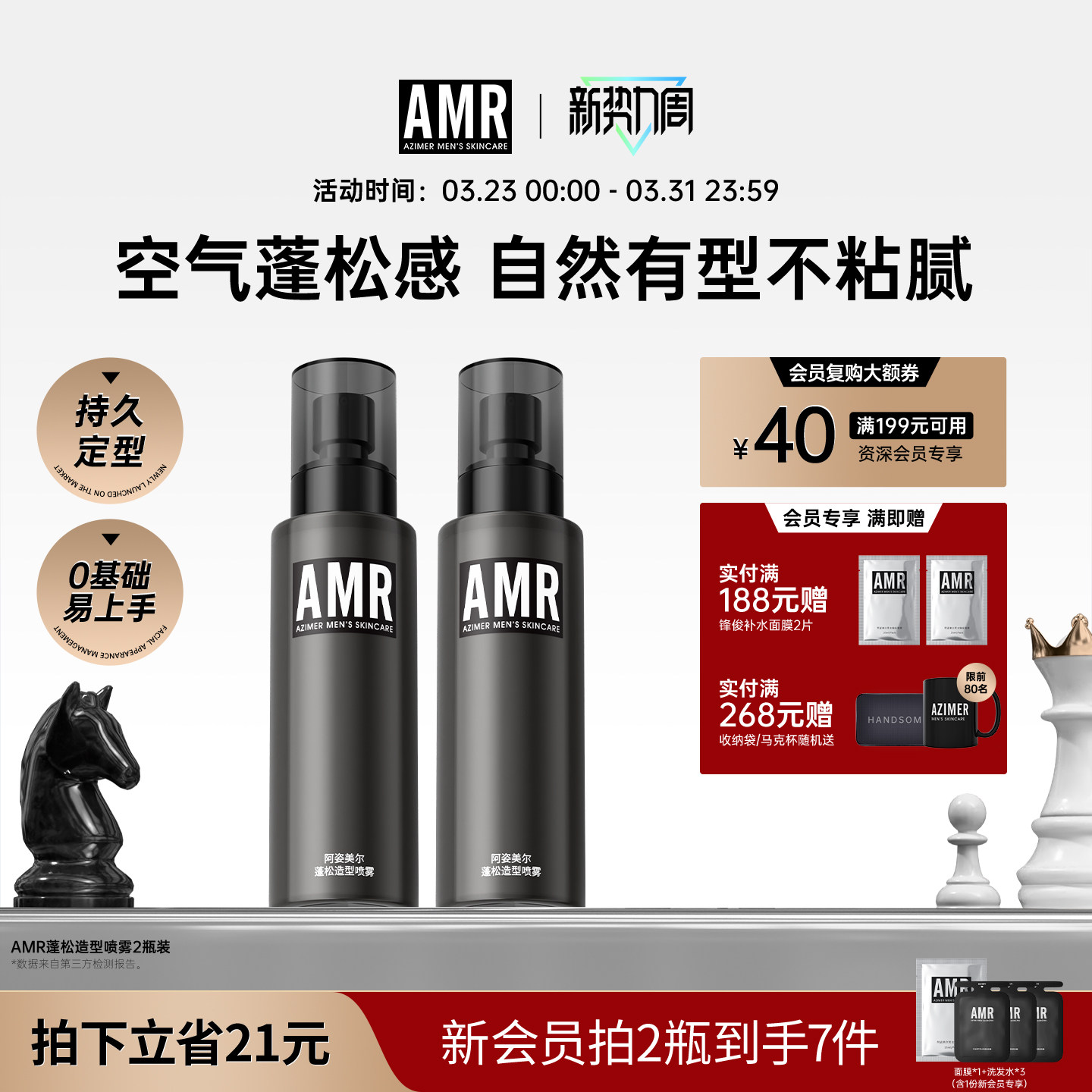 AMR男士头发蓬松水造型发胶定型喷雾持久自然持久免洗去啫喱干发