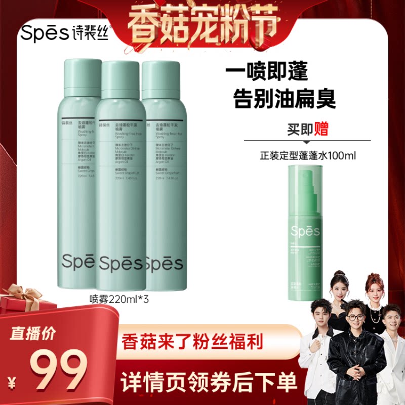 【直播专属】Spes诗裴丝干发喷雾免洗蓬松喷雾干爽蓬蓬高颅顶