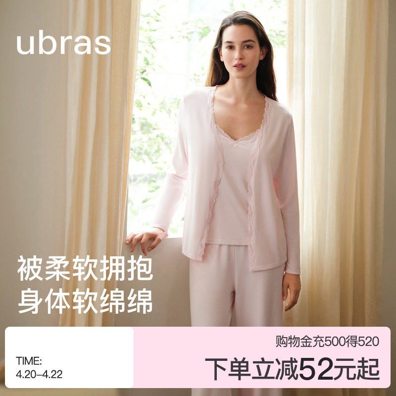 ubras软绵绵家居服女款睡衣羽绒化吊带开衫三件套可外穿春夏季