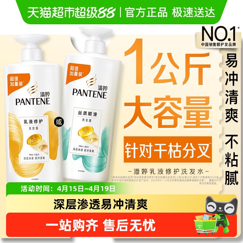 潘婷洗发水膏护发素露柔顺丝滑滋润去油蓬松改善毛躁干枯分叉正品