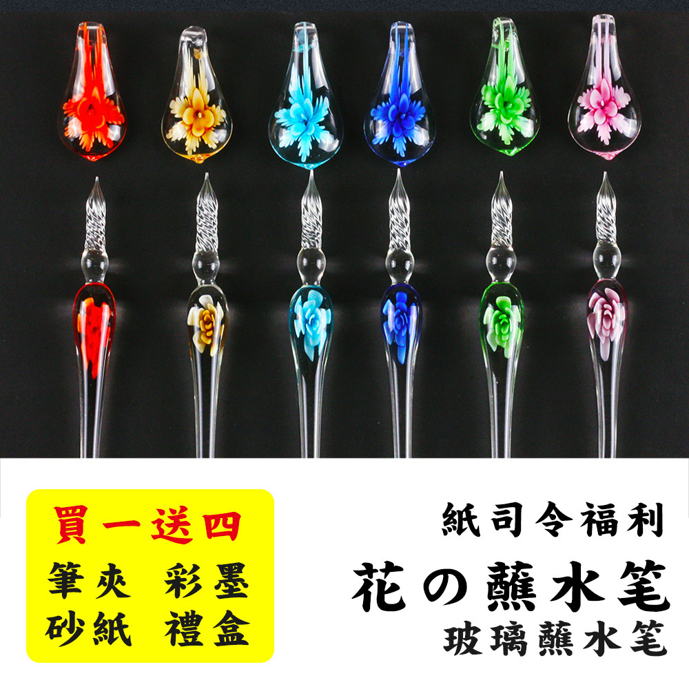 包邮玻璃蘸水笔签字笔彩色墨水漫画试色笔玻璃沾水笔送笔托送彩墨