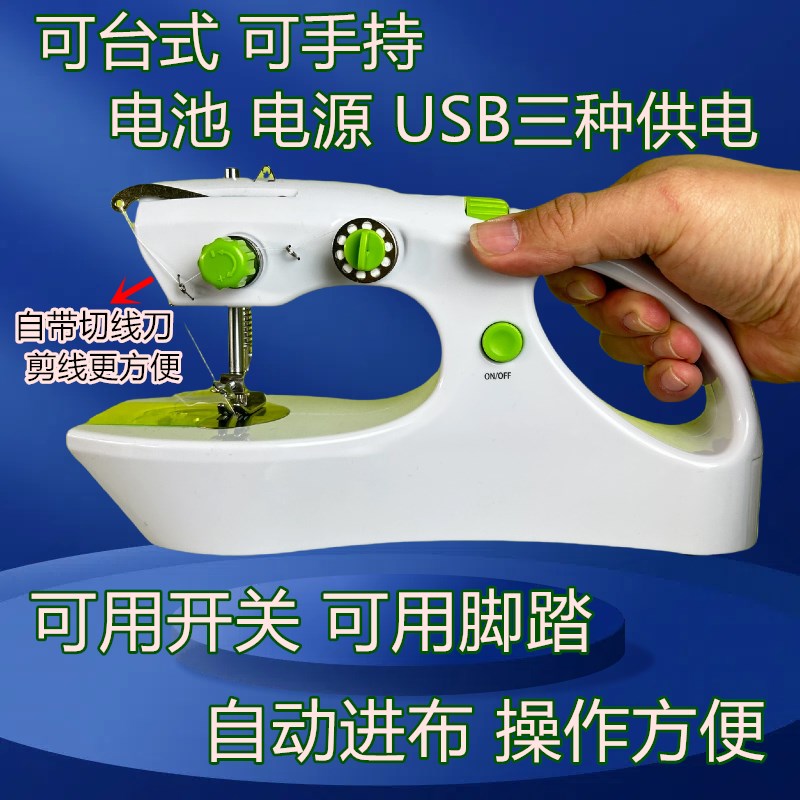 全自动手持双线小电动缝纫机家用小型迷你微型台式简易缝衣机袖珍