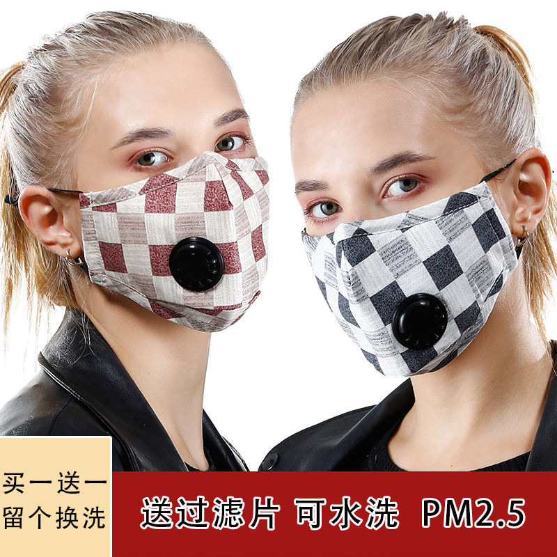 男女士带呼吸阀格子素色可水洗成人棉布口罩可插防雾霾PM2.5滤片