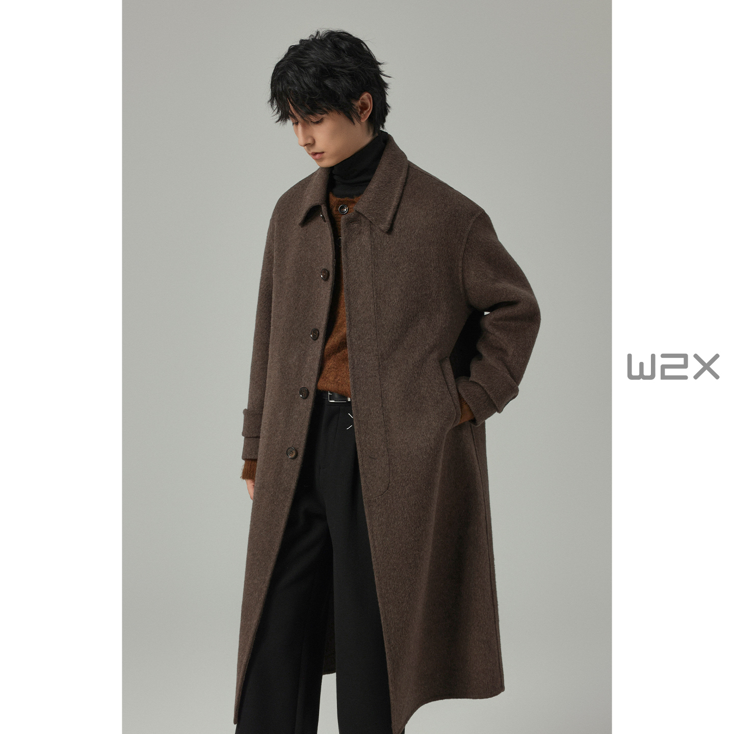 w2x冬季翻领双面呢羊毛呢子大衣男中长款英伦风高级感妮子外套潮