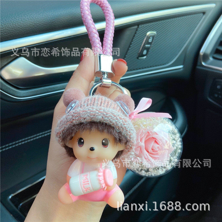 可爱奇奇永生花汽车钥匙扣毛绒卡通公仔钥匙链圈书背包挂件小礼物