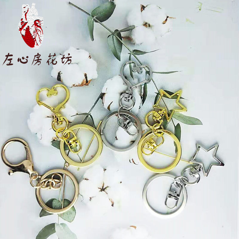 永生花钥匙扣diy配件闭口环链条金色三件套锌合金龙虾扣饰品配件