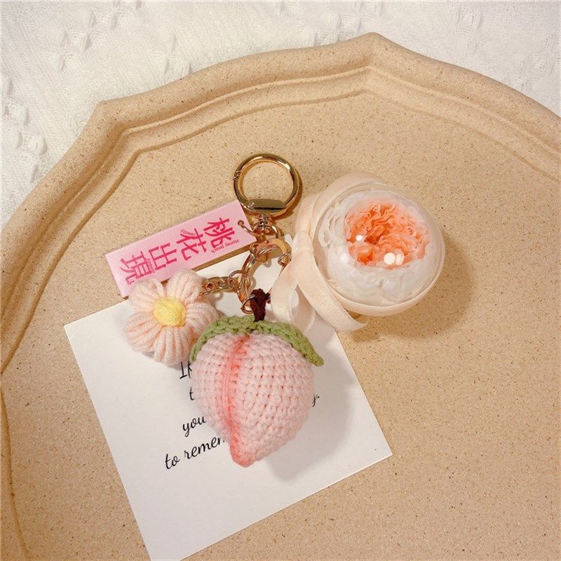 桃花出现创意针织桃子玫瑰永生花钥匙扣可爱汽车钥匙链生日小礼物