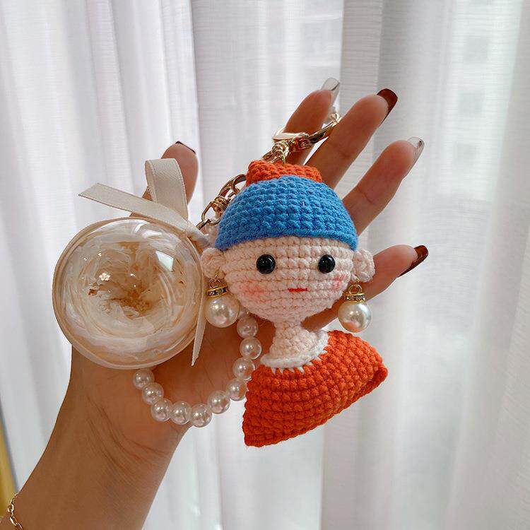 手工编织袋珍珠耳环的女孩永生花钥匙扣可爱汽车钥匙链包挂件礼物