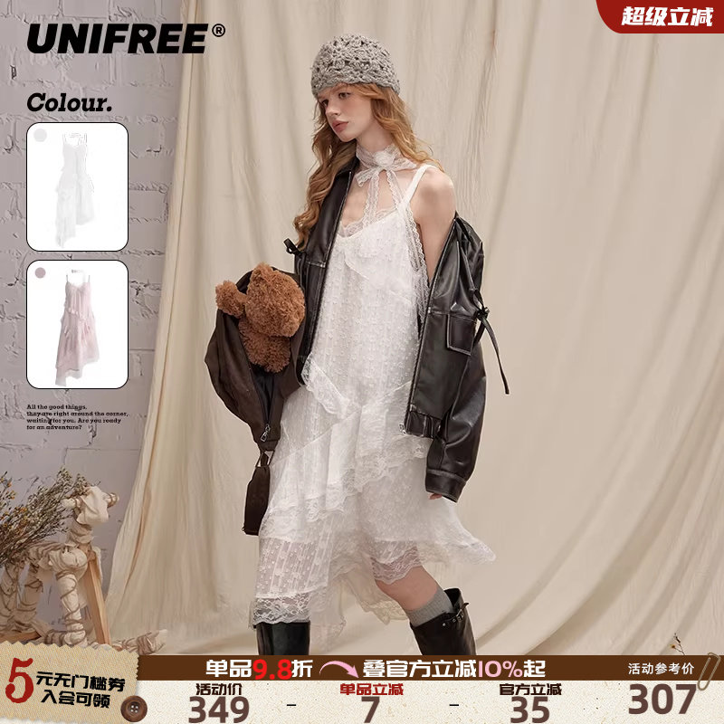 【明星同款】UNIFREE蕾丝吊带裙女不规则演唱会穿搭蛋糕裙连衣裙