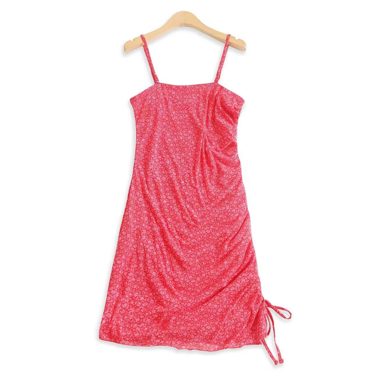 网纱印花蕾丝吊带裙 夏新外贸女吊带抹胸褶皱系带包臀短裙32335