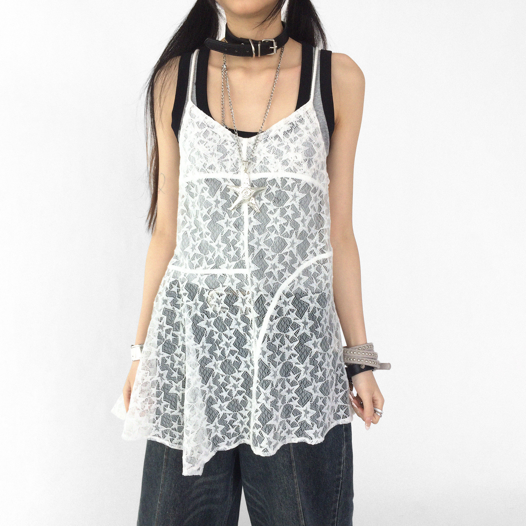 innomoood 星星蕾丝吊带裙可调节叠穿百搭氛围感内搭慵懒小众设计