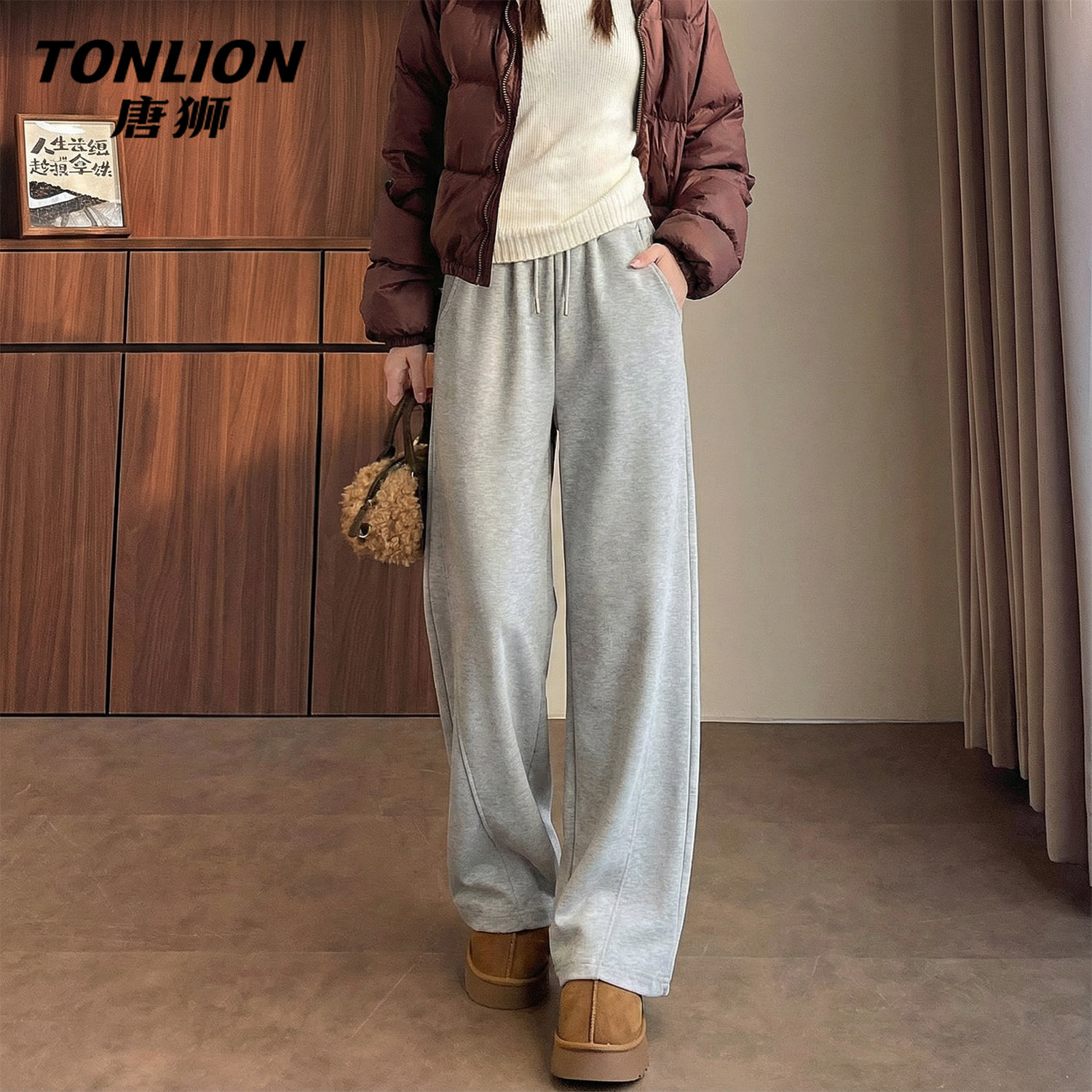 唐狮官方休闲运动裤女款2026春秋新款高腰显瘦直筒宽松阔腿裤子VB