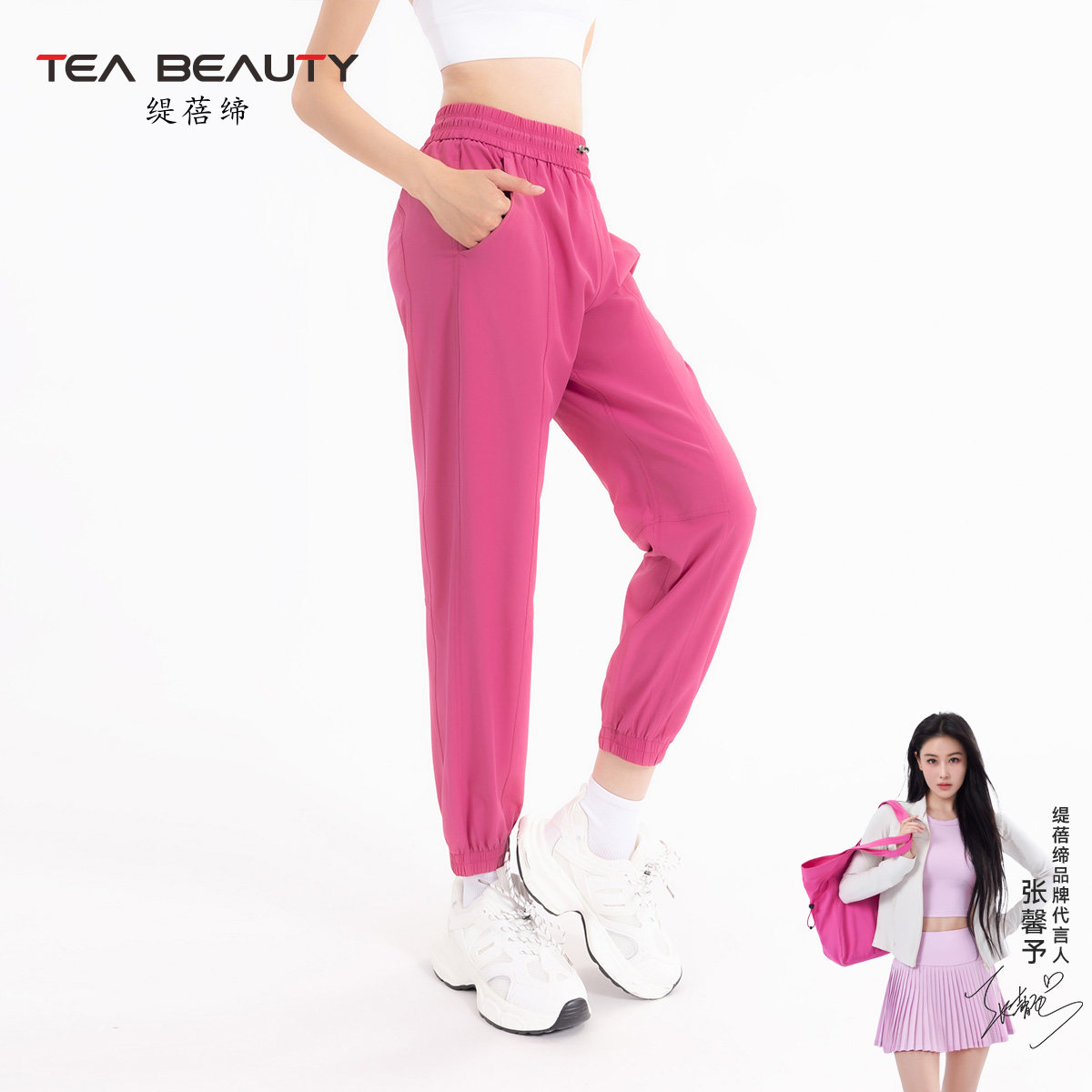 Tea Beauty休闲运动裤女2024夏季户外跑步训练健身长裤高腰束脚裤