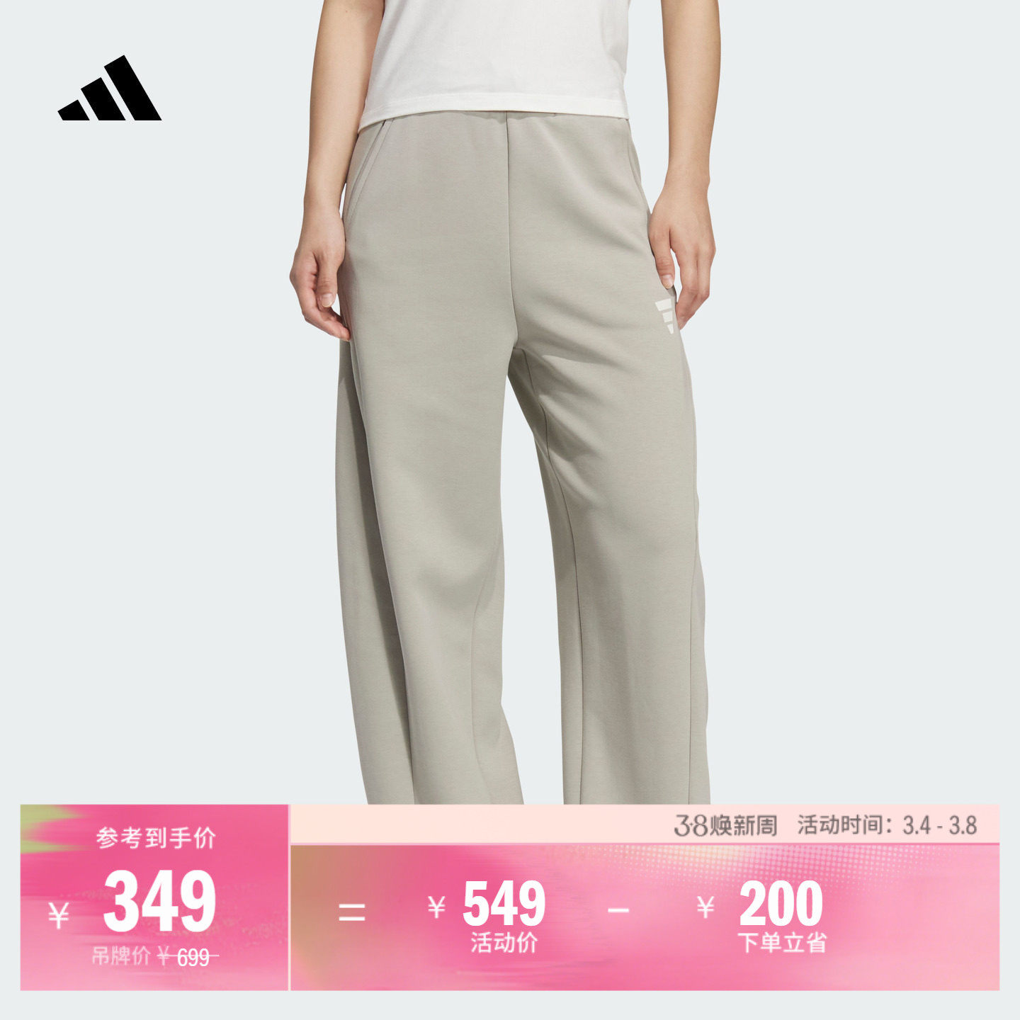 松弛感优雅时尚宽松阔腿休闲运动裤女装新款adidas阿迪达斯三叶草