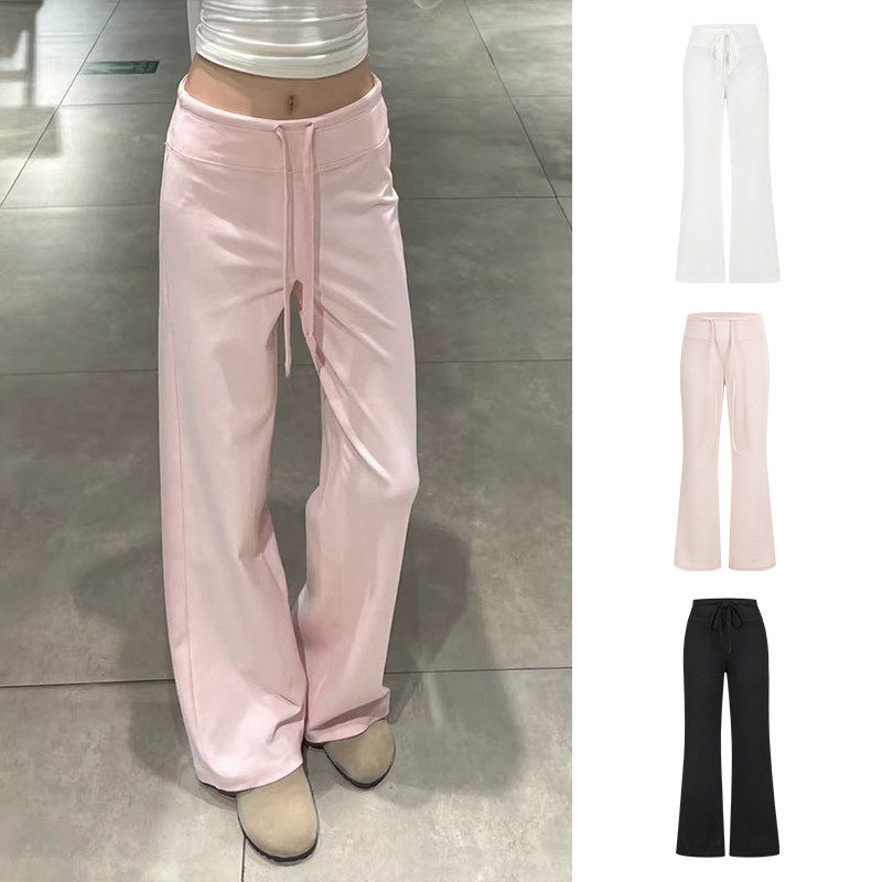 asomesome美式黑色微喇直筒低腰卫裤女灰色修身休闲松弛运动裤子