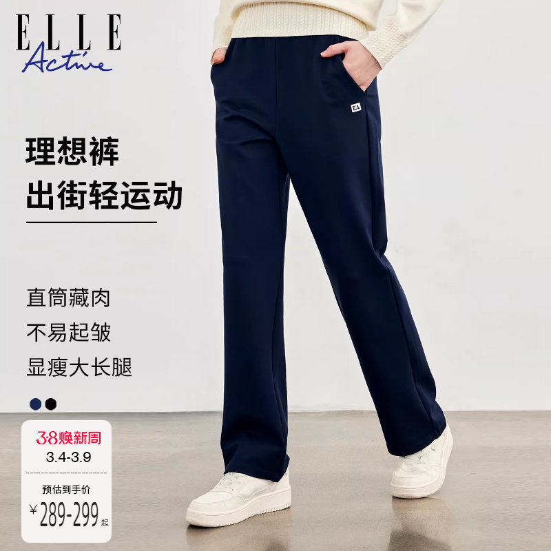 ELLE Active户外宽松休闲运动裤女直筒垂感长裤子高级感显瘦卫裤